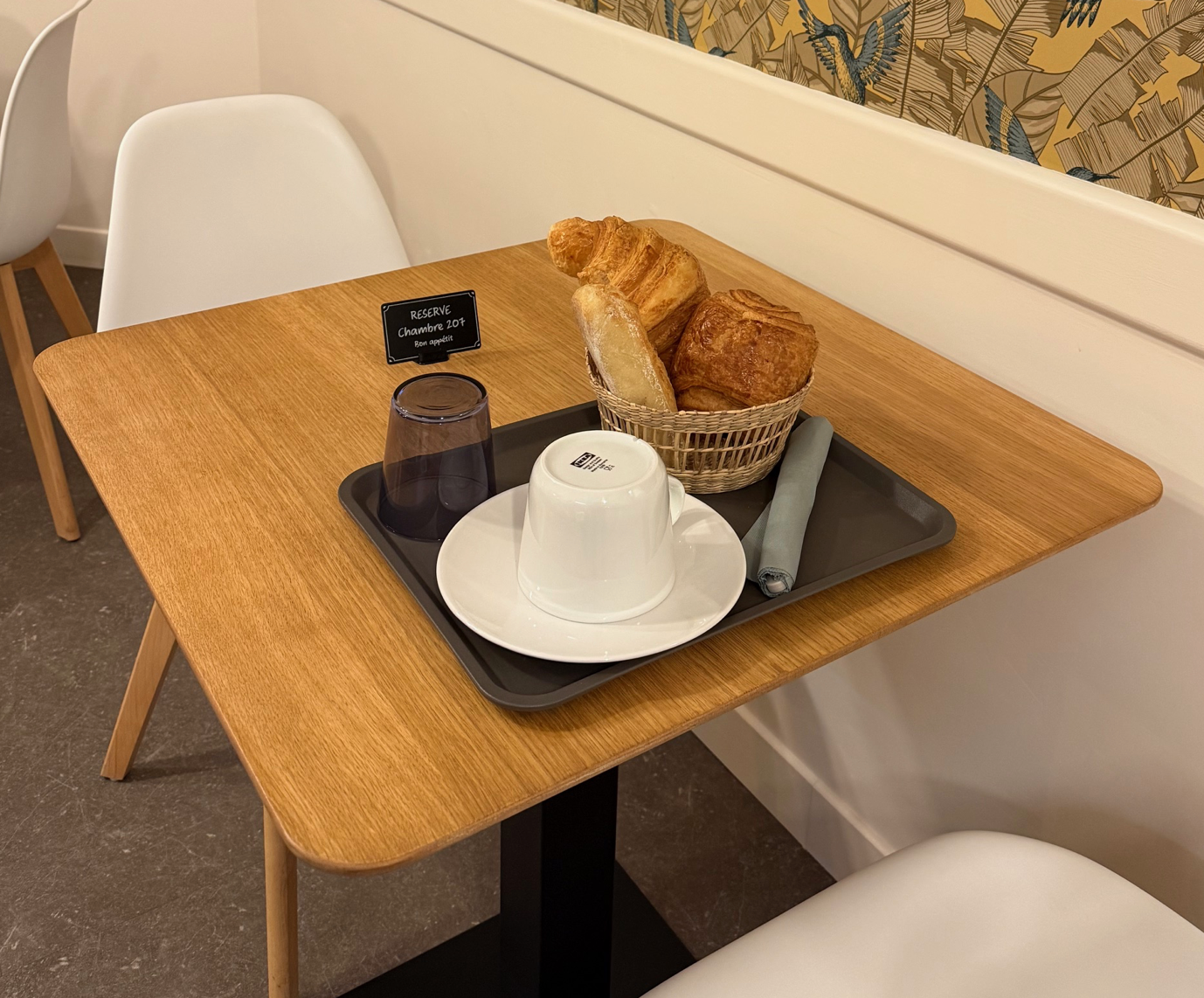 Tous les matins à l'OXXOTEL un petit-déjeuner continental peu vous être servi à partir de 7h30 en semaine et 8h30 le week end / jours fériés , jusqu'à 10H30 et cela sur réservation, au calme de notre confortable salle à manger. Vous apprécierez nos viennoiseries françaises traditionnelles, pain , beurre, confitures, compote, céréales, jus de fruits et boisson chaude.